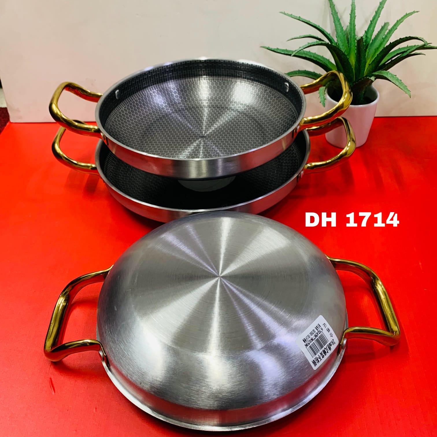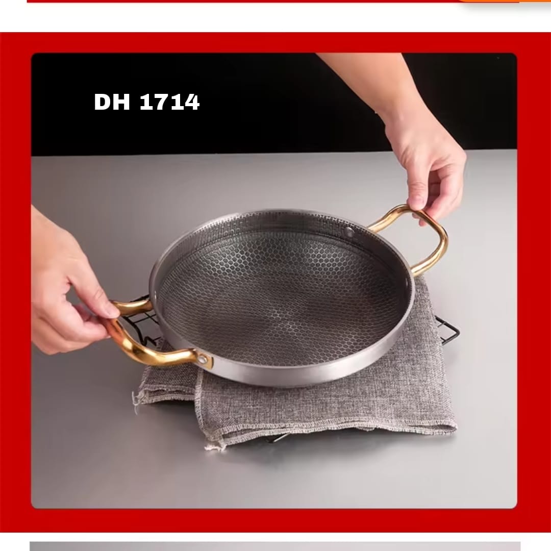 28CM Honeycomb Flat pan Steel Wok with Double Handle for Gas Electric Induction