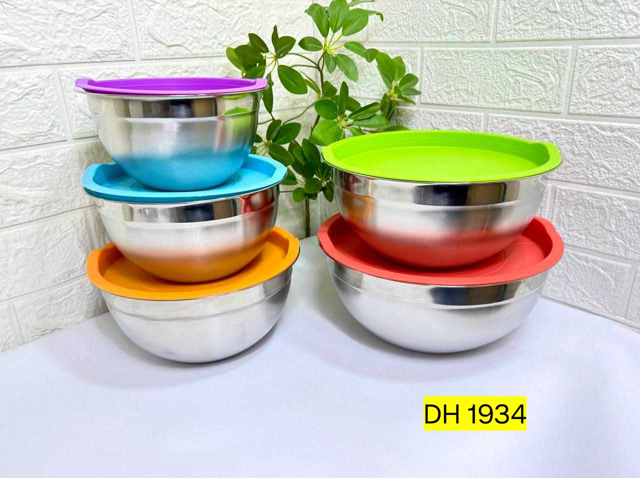 5 pcs Stainless Steel & Silicon Mixing Bowl set with lid