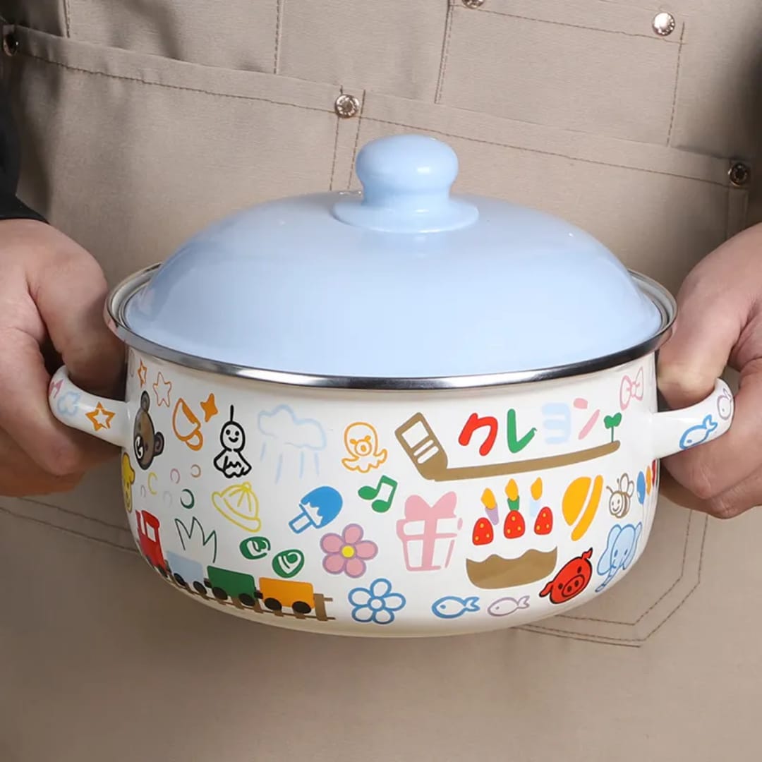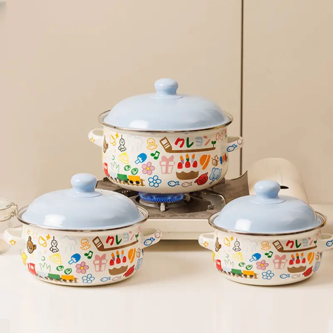 High Quality Enameled Pot 6-piece Cookware Set White Bottom Flower Soup Pot with Two Ears Cooking Pot